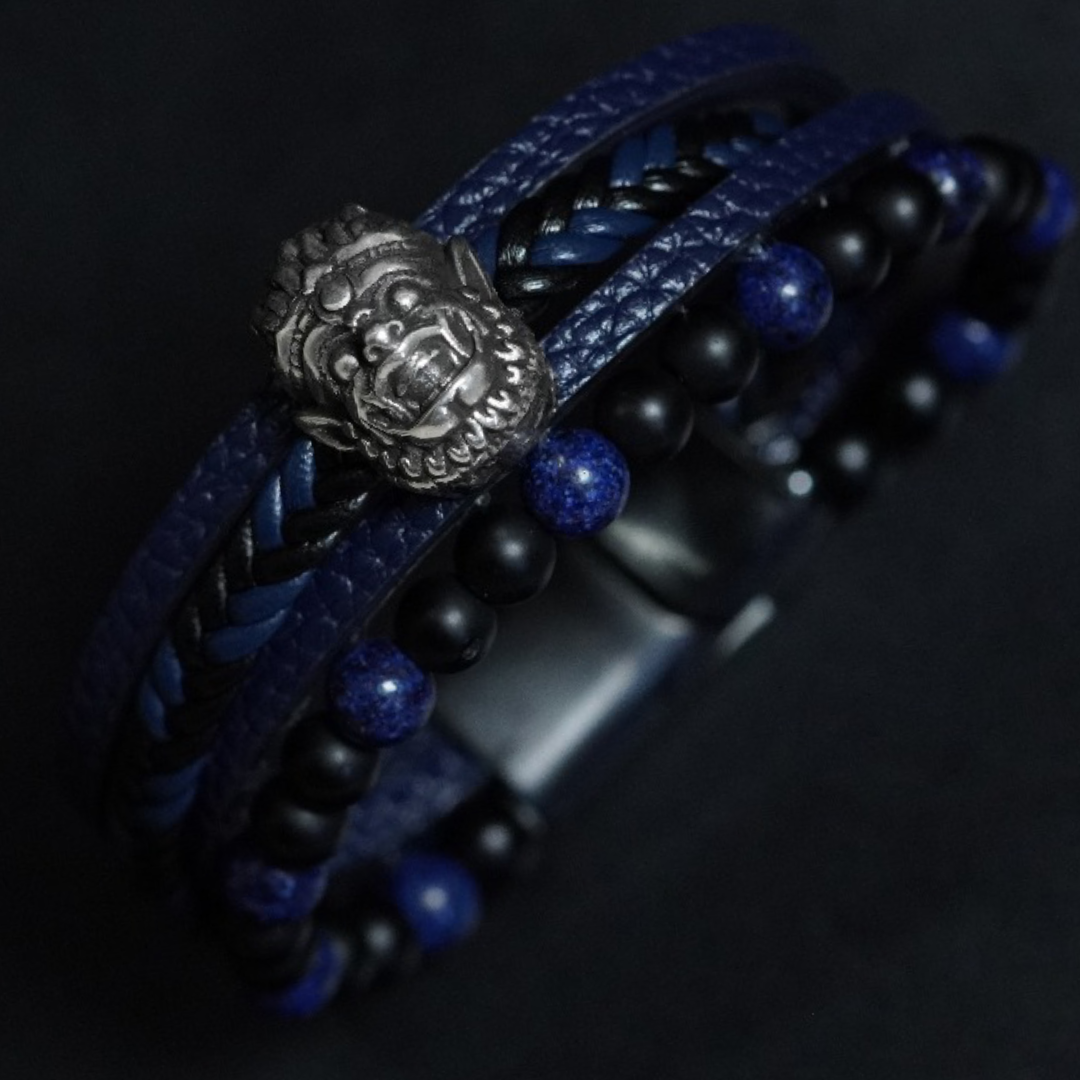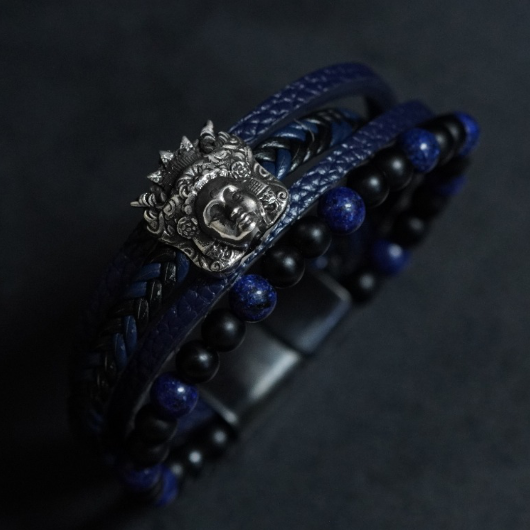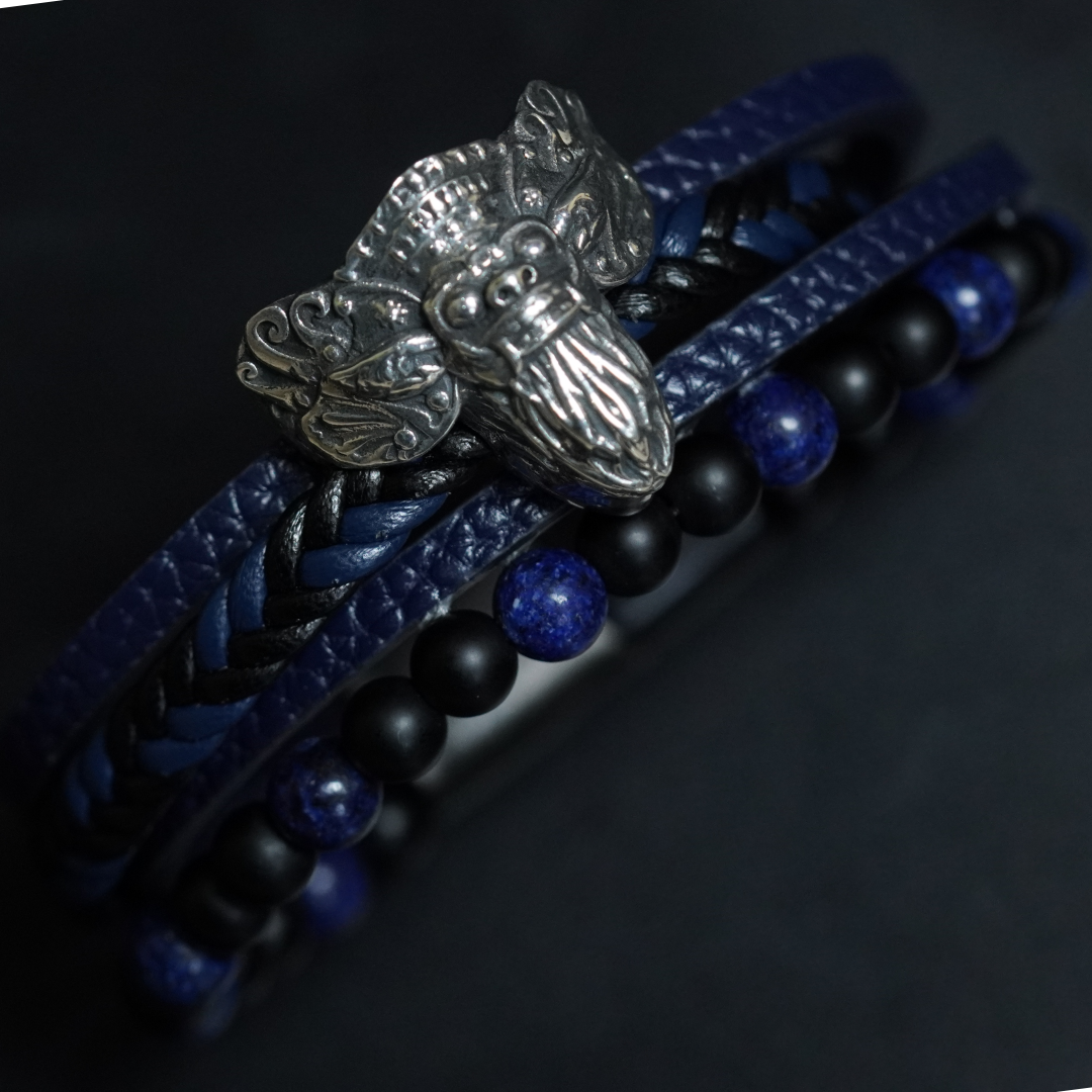 Handcrafted in silver and mounted on deep-blue recycled leather, each design reflects the soul of its Balinese guardian.